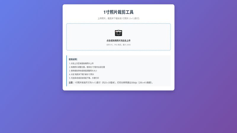 1寸照片裁剪工具 上传照片,裁剪并下载标准1寸照片 (1×1.5英寸)