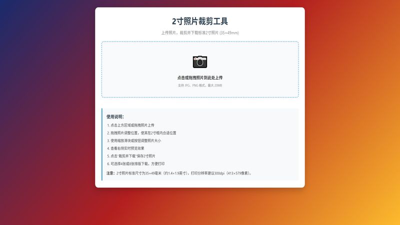 2寸照片裁剪工具 上传照片,裁剪并下载标准2寸照片 (35×49mm)