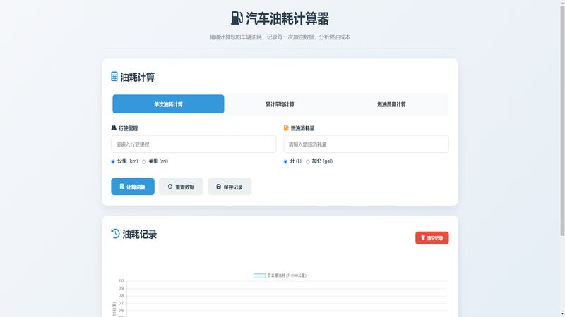 汽车油耗计算器支持单次 / 累计平均油耗计算燃油费用核算支持公里英里升加仑单位记录加油数据分析燃油成本精准计算百公里油耗