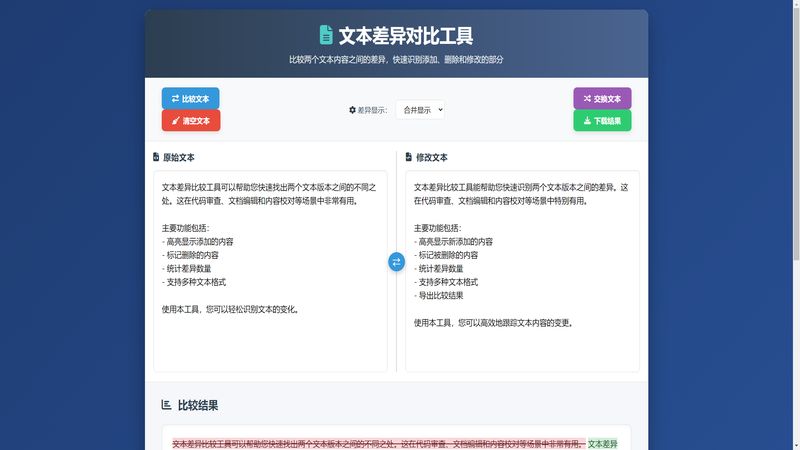 比较两个文本内容之间的差异,快速识别添加、删除和修改的部分