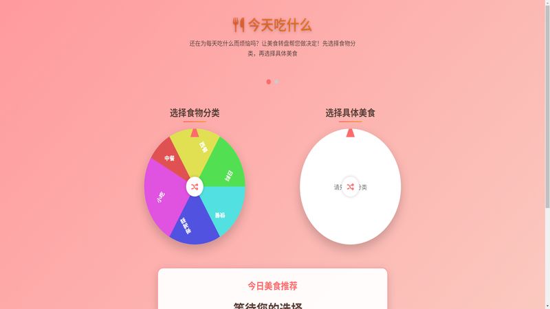 还在为每天吃什么而烦恼吗?让美食转盘帮您做决定!先选择食物分类,再选择具体美食