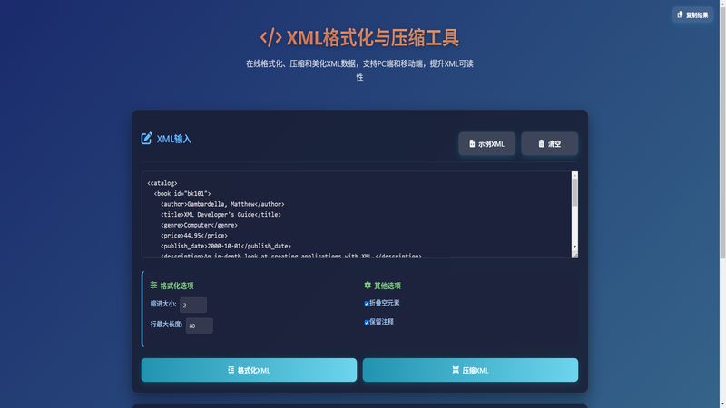 在线格式化、压缩和美化XML数据,支持PC端和移动端,提升XML可读性