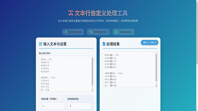 在文本每行指定位置或行首尾添加自定义字符串 - 支持多种模式,实时预览处理效果