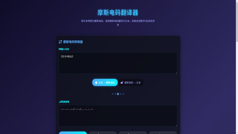 将文本转换为摩斯电码,或将摩斯电码解码为文本。完美支持数字0及其他字符