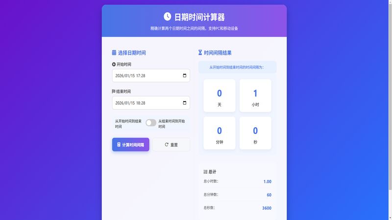 在线日期时间计算器精确计算两个日期时间之间的间隔,支持PC和移动设备