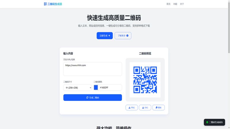 在线二维码生成器支持文本 / URL / 电话号码输入一键生成,自定义尺寸颜色,PNG/SVG 多格式下载,本地操作隐私保护无需安装移动友好适用于名片网站。
