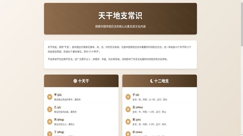 天干地支,简称"干支",是中国古代用来记录年、月、日、时的历法系统,也是中国传统文化中重要的时间标记方式。
