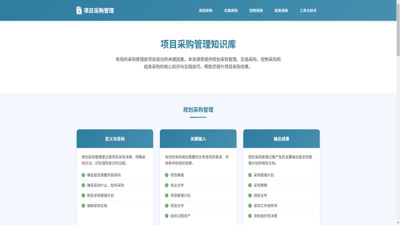 本资源库提供规划采购管理、实施采购、控制采购和结束采购的核心知识与实践技巧,帮助您提升项目采购效果。